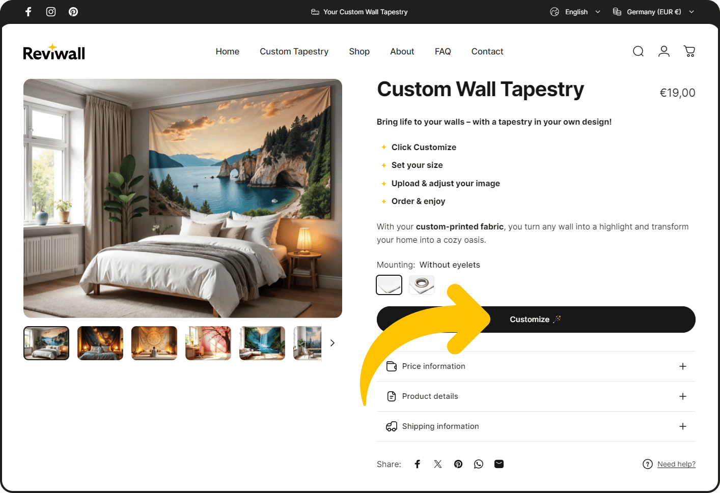 - Gehe zur Produktseite deines Foto-Wandtuchs